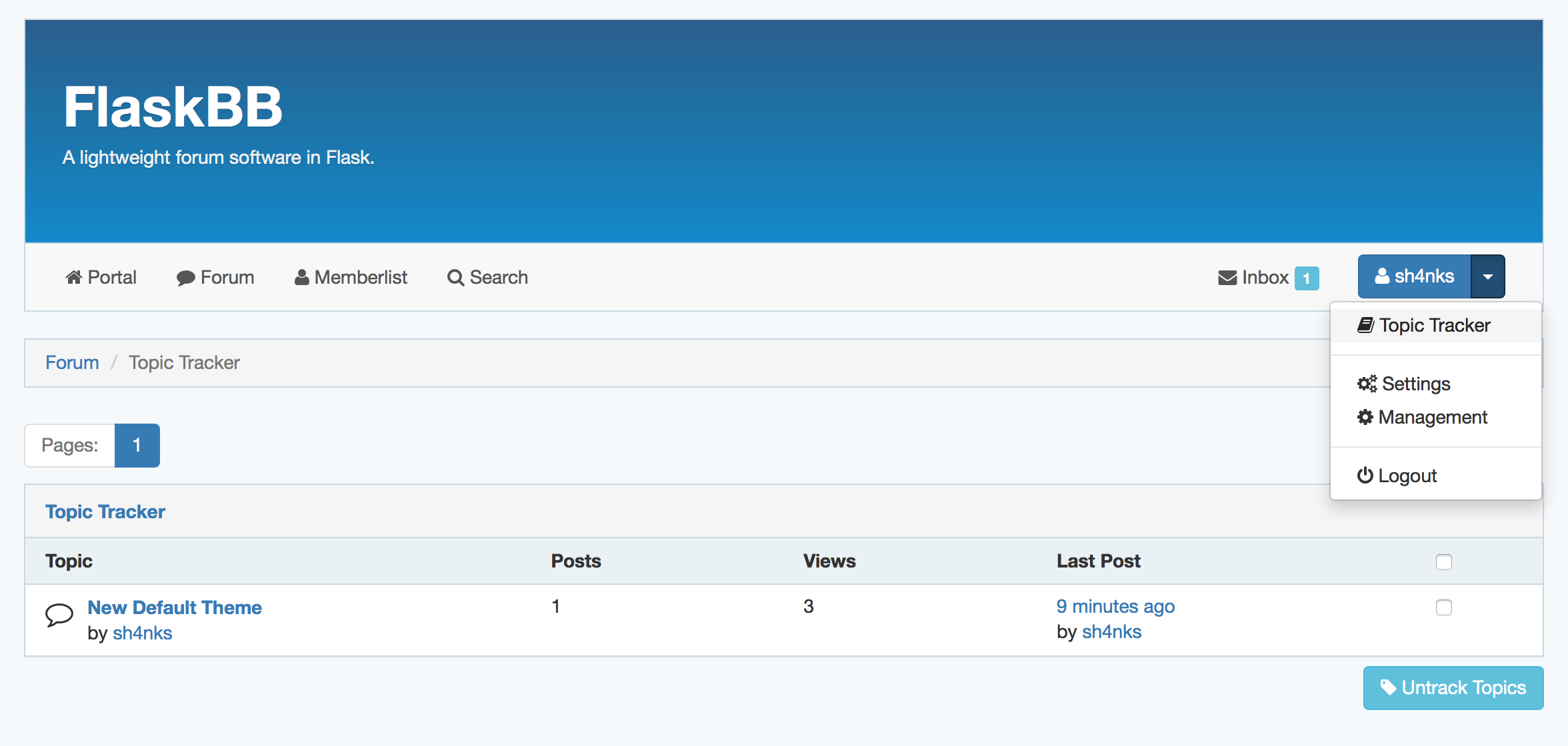 Are you sick of the standard theme or you simply want to create a customized style for your site? No problem! You can customize every template in FlaskBB. Besides that, you can also install community made themes.